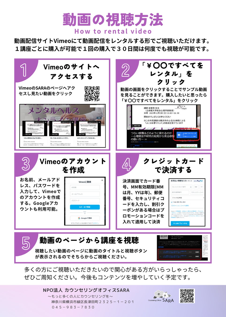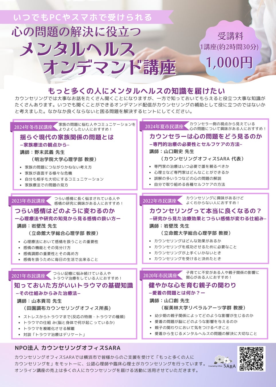 カウンセリングオフィスSARAの「メンタルヘルスオンデマンド講座」で講座の内容を配信中。