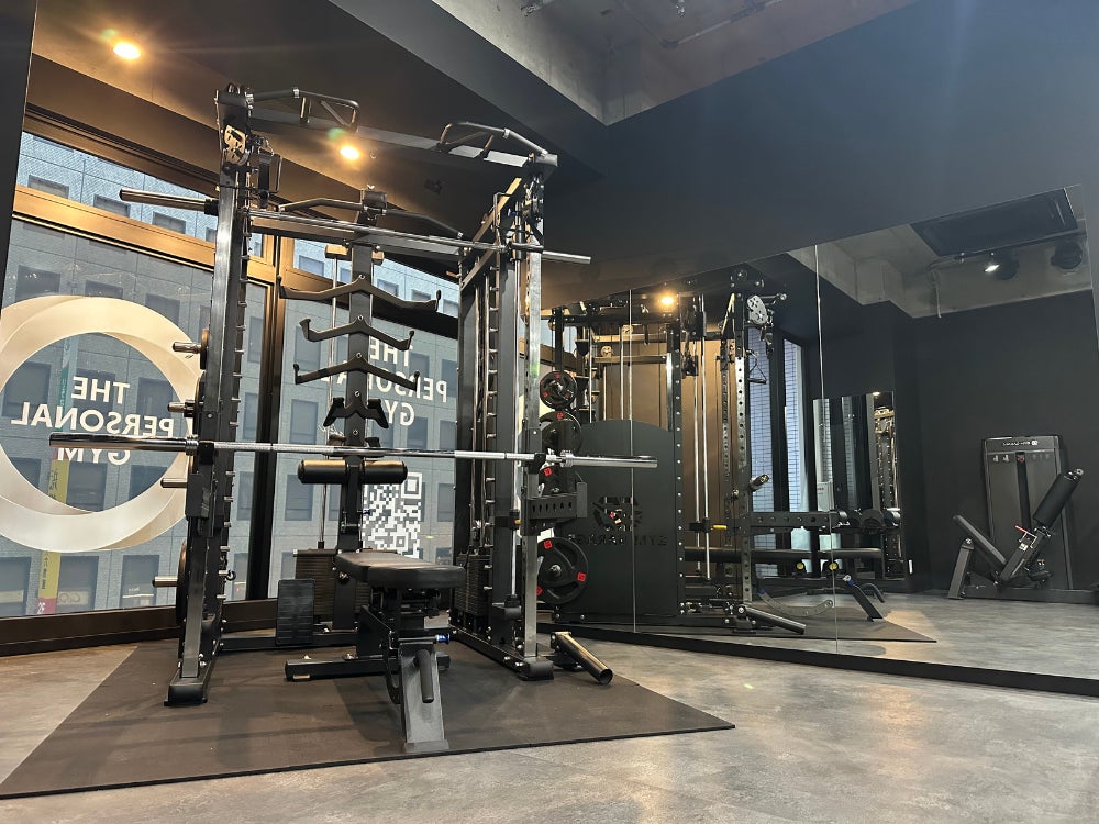 THE PERSONAL GYM 天神橋筋六丁目店は、広々とした空間を特徴としており、お客様が同時に2名までトレーニングできる環境を整えています。また、パーソナルジムとしては珍しく、豊富なトレーニング機材をご用意しております。快適な環境で、質の高いトレーニング体験をお楽しみいただけます。