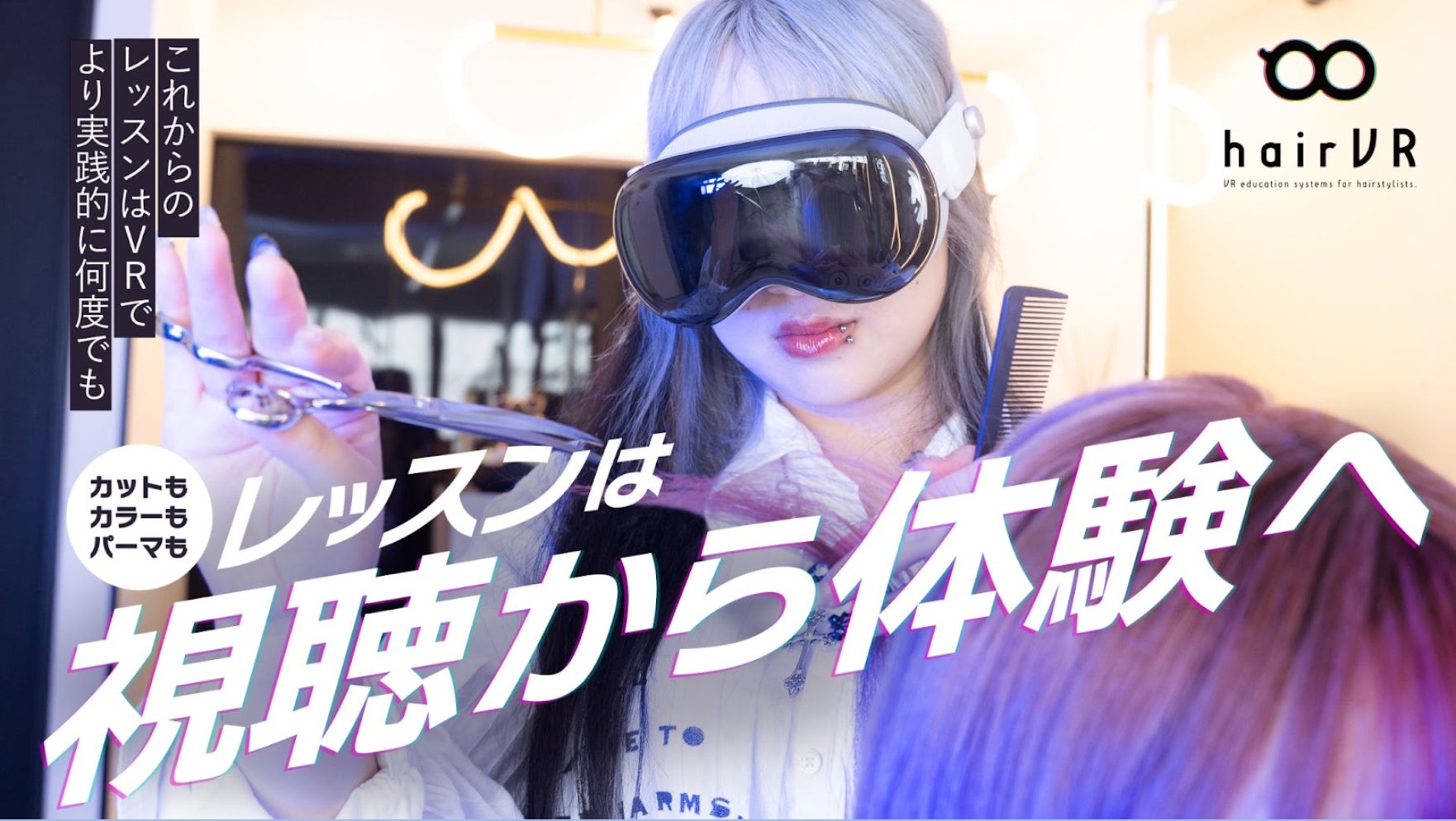 hairVR社の動画教材は、技術をもった理美容師の施術の様子を空間ビデオ(©Apple Inc.)として録画し、教材用にポイントをまとめた字幕を追加した動画を提供します。空間ビデオを活用した美容師向け動画教材は世界初であり、従来に比べて技術の効率的な向上が期待できます。