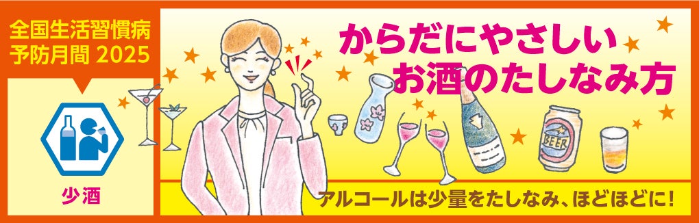 毎年2月は、日本生活習慣病予防協会(代表:和田 高士/日本医療・健康情報研究所 所長)が主催する「全国生活習慣病予防月間」です。2025年の強化テーマは、日本生活習慣病予防協会の健康標語『一無、二少、三多』より、「少酒~アルコールは少酒を心がけ、ほどほどに!~」です。