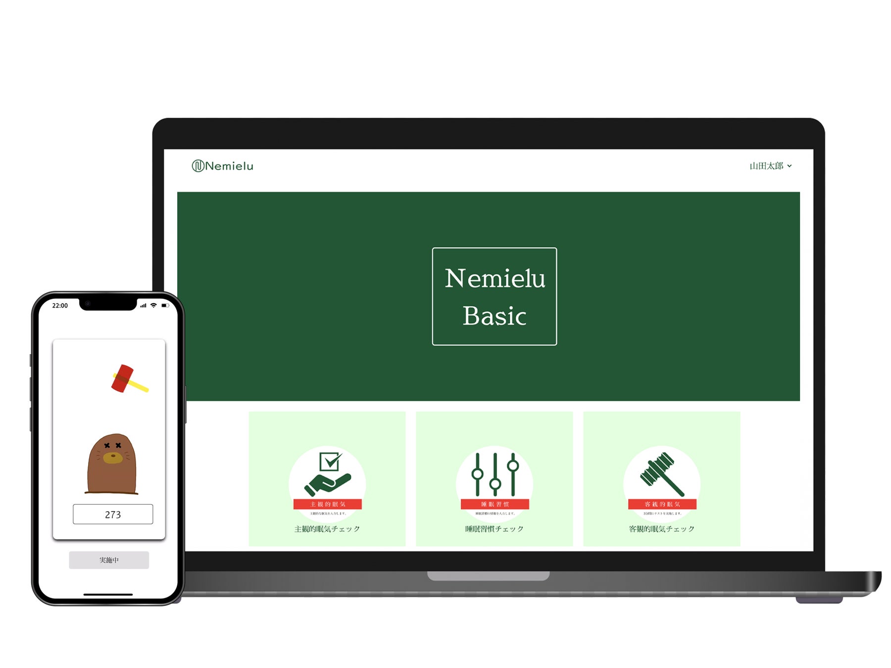 Nemielu Basicは、企業が健康経営や安全への取り組みの一環として睡眠施策を実施しやすくするために開発された、企業向けのWEBサービスです。日中の眠気チェックを通じて睡眠を評価し、改善につなげることを目的としています。新たにリリースした「Nemielu Basic」は、睡眠習慣管理システムとして、従業員の眠気チェックの実施・管理に加え、データの閲覧や分析ができるシステムです。