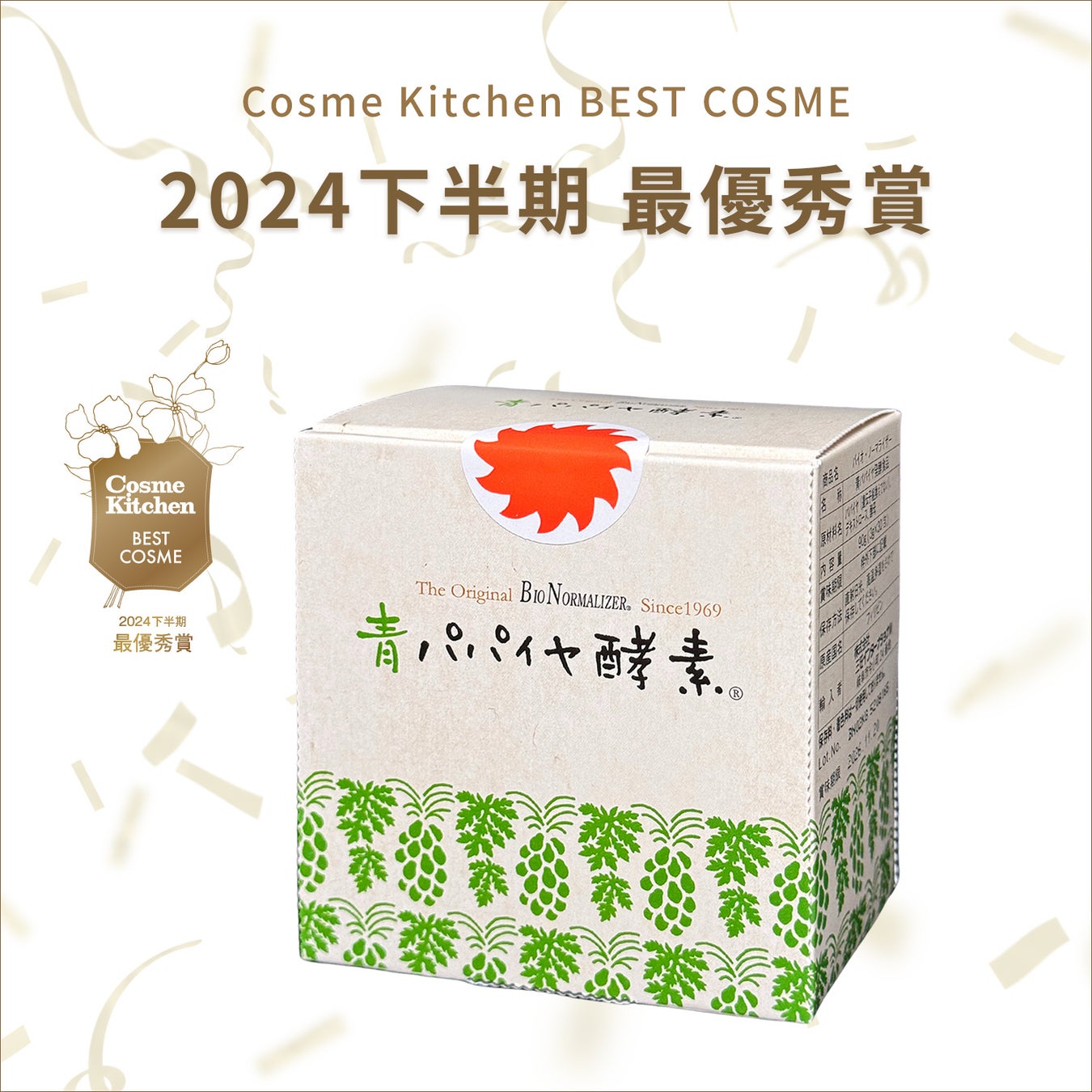 Cosme Kitchenが主催する「Cosme Kitchen BEST COSME 2024下半期」において最優秀賞を受賞した「青パパイヤ酵素 顆粒タイプ」、同スペシャルケア部門1位を獲得した「青パパイヤ酵素 シートマスク」とカカオバーが入ったBセット。さらに、本体部分が青パパイヤ型オリジナルデザインの3in1充電ケーブルのおまけ付き。