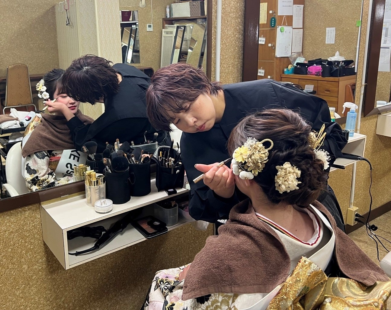 お店の時とは違い、着付けが終わっても撮影などの時に手直しをするなど、今まで体験したことがないこともあり、改めて着付けのやりがいなどを感じることができました。