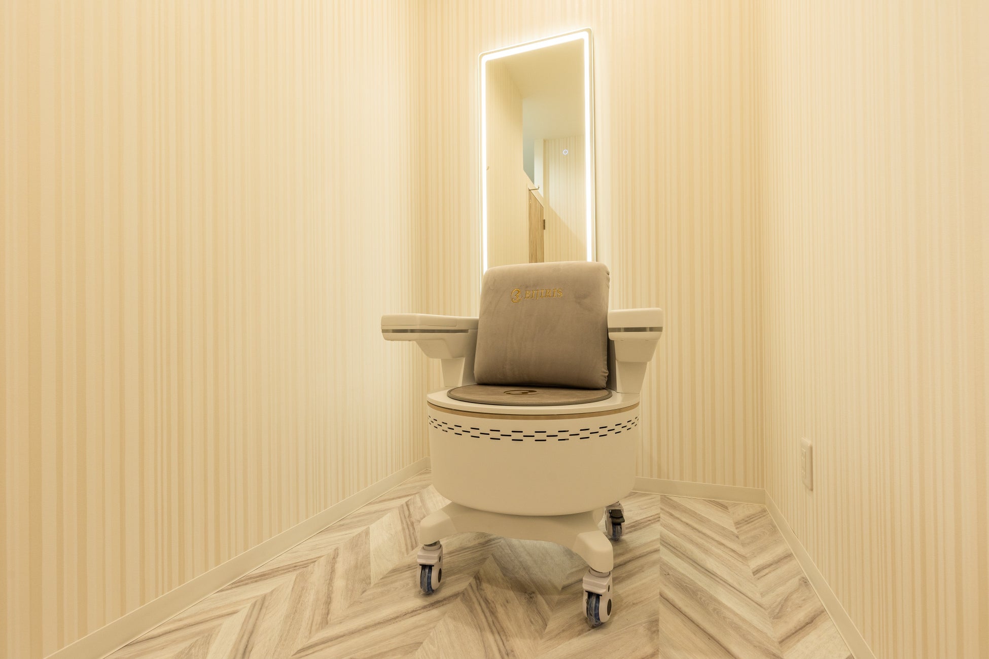 服を着たまま座るだけで「筋肉+脂肪」両方にアプローチできます。なかなか鍛えることのできない骨盤底筋や下半身を電磁パルスの刺激で座るだけで鍛えることができる美容マシンです。
