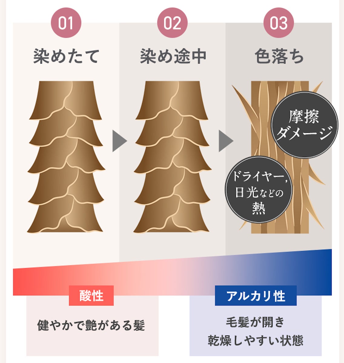 そこで、私たちに解決できる分野である「髪」のワタシ色をできる限り長く美しく守り続けるためカラーキープシリーズ「AMINO RICH+」を開発いたしました。