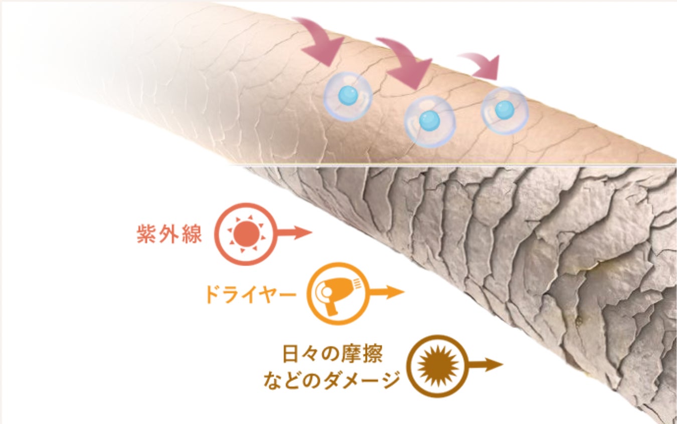 髪の水分バランスを整えるために、12種類のアミノ酸※を贅沢に配合。これらのアミノ酸が髪の内部まで浸透し、潤いをしっかりと閉じ込めます。シルクのような滑らかさと指通りの良さを実現し、毛先まで健康的なツヤをキープします。さらに、日常の紫外線や熱ダメージからも髪を守る働きがあります。