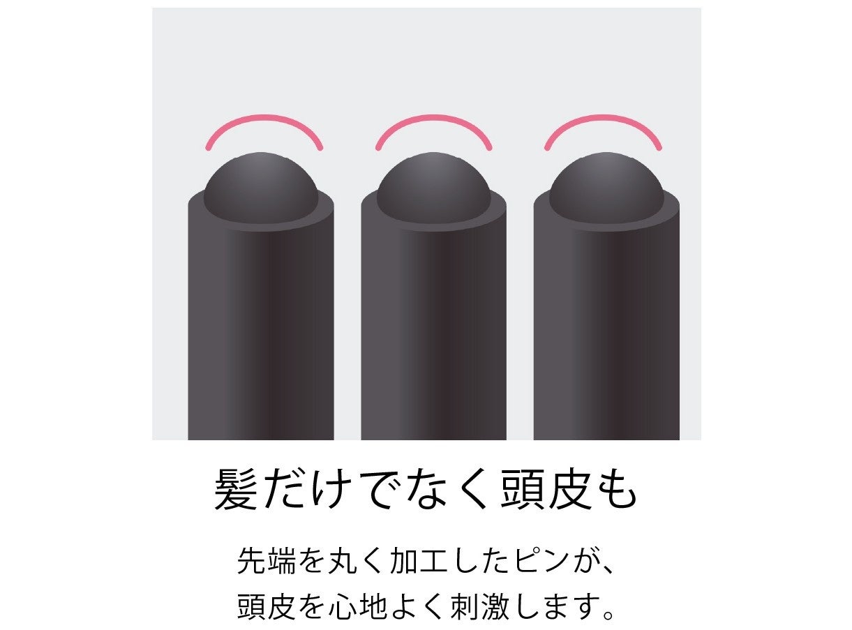①ほぐしとみがきを同時に叶える3段構造のピンが、からまりをほぐし、髪にまとまりとツヤを与えます。