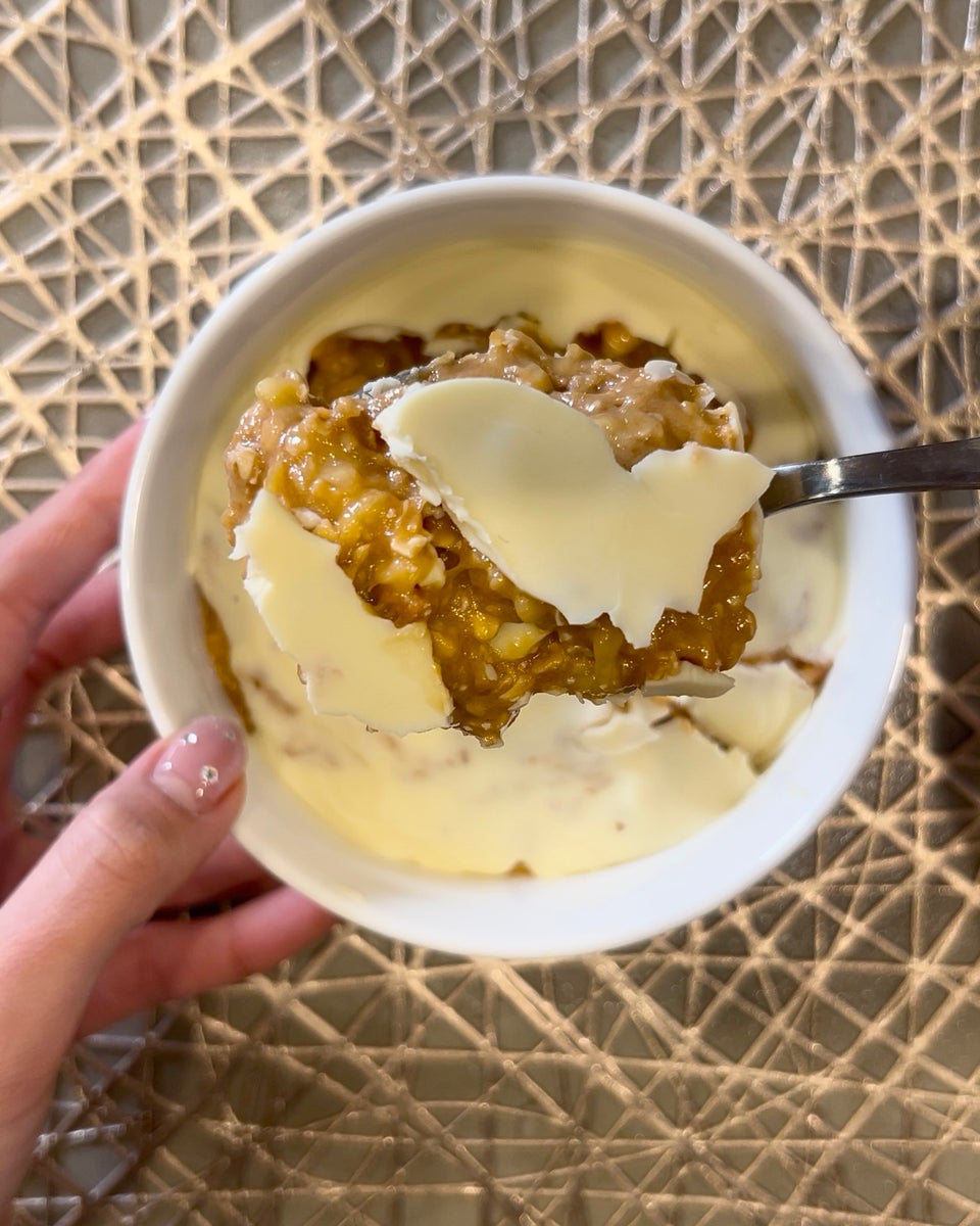 ②ギリシャヨーグルトと水を加えて混ぜる ⑤レンジで600w 2分加熱