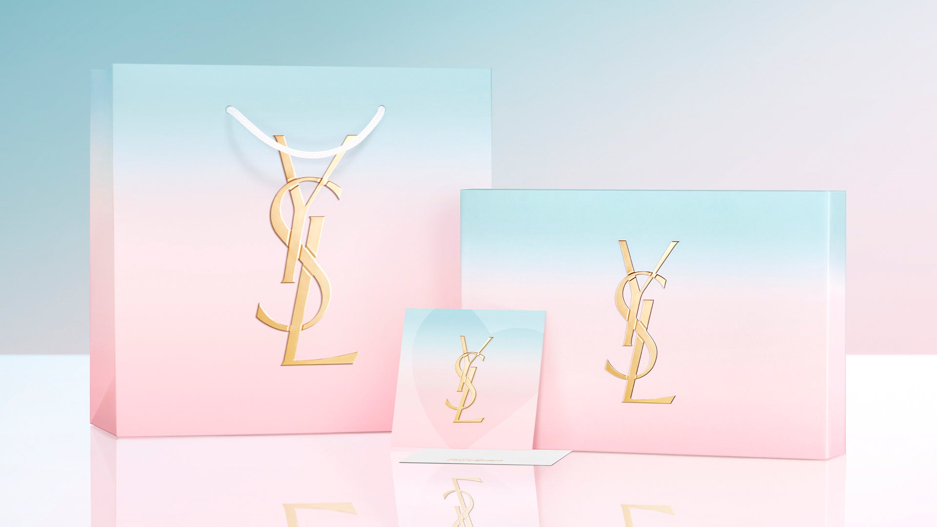 YSLアイコンモチーフのハートがカラーグラデーションに透けるスプリング限定デザインのカードを、ギフトボックスをご購入の方に。大切な方へのギフトに、メッセージを添えて。