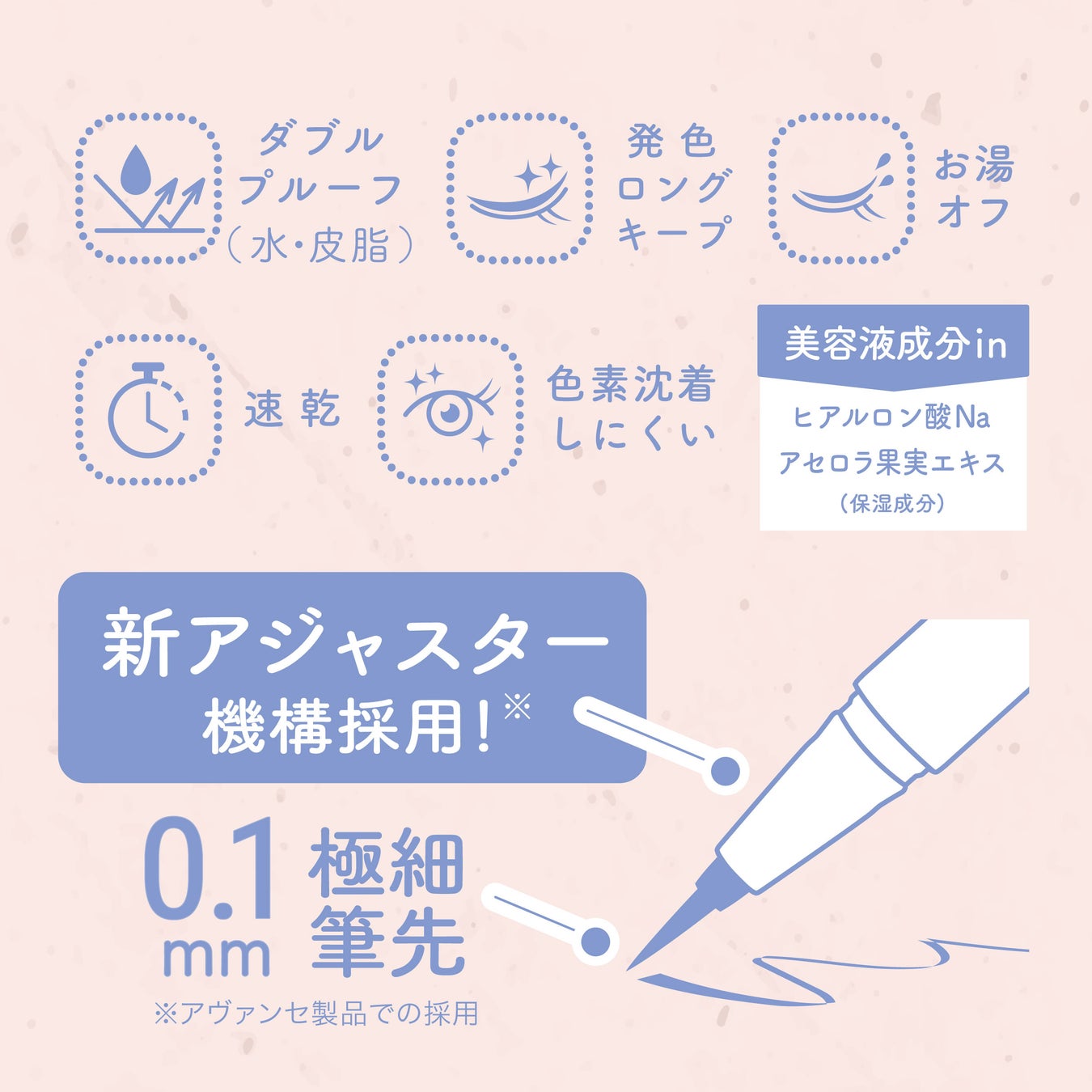 アイゾーンケアのスペシャリストであるアヴァンセならではの処方で、美容液成分※1配合により「メイクしながらケア」を叶えます。色素沈着しにくく、水・皮脂に強いダブルプルーフで、日常使いにぴったりです。
