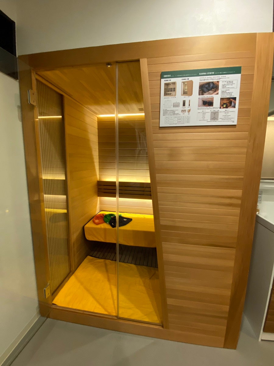 今回は山形の株式会社リノベースのリフォーム展示場に室内用サウナ(CUBE3W)を展示し、個人宅でサウナを楽しんでいただくため、お客様の体験ブースを設置。また、定型サイズのサウナが入らない場合は、その場に合うようにサウナ室を造作も行っています。宮城、山形を始め東北のサウナ文化を広めていけるよう皆様と共にサウナを楽しんでいきたいと考えています。