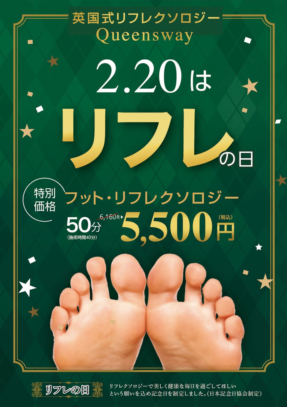 毎年2月20日は「リフレの日」という記念日として制定されています。これは「英国式リフレクソロジー」を日常に取り入れることで、多くの人に美しく健康的な毎日を過ごしてもらいたいとの願いが込められています。