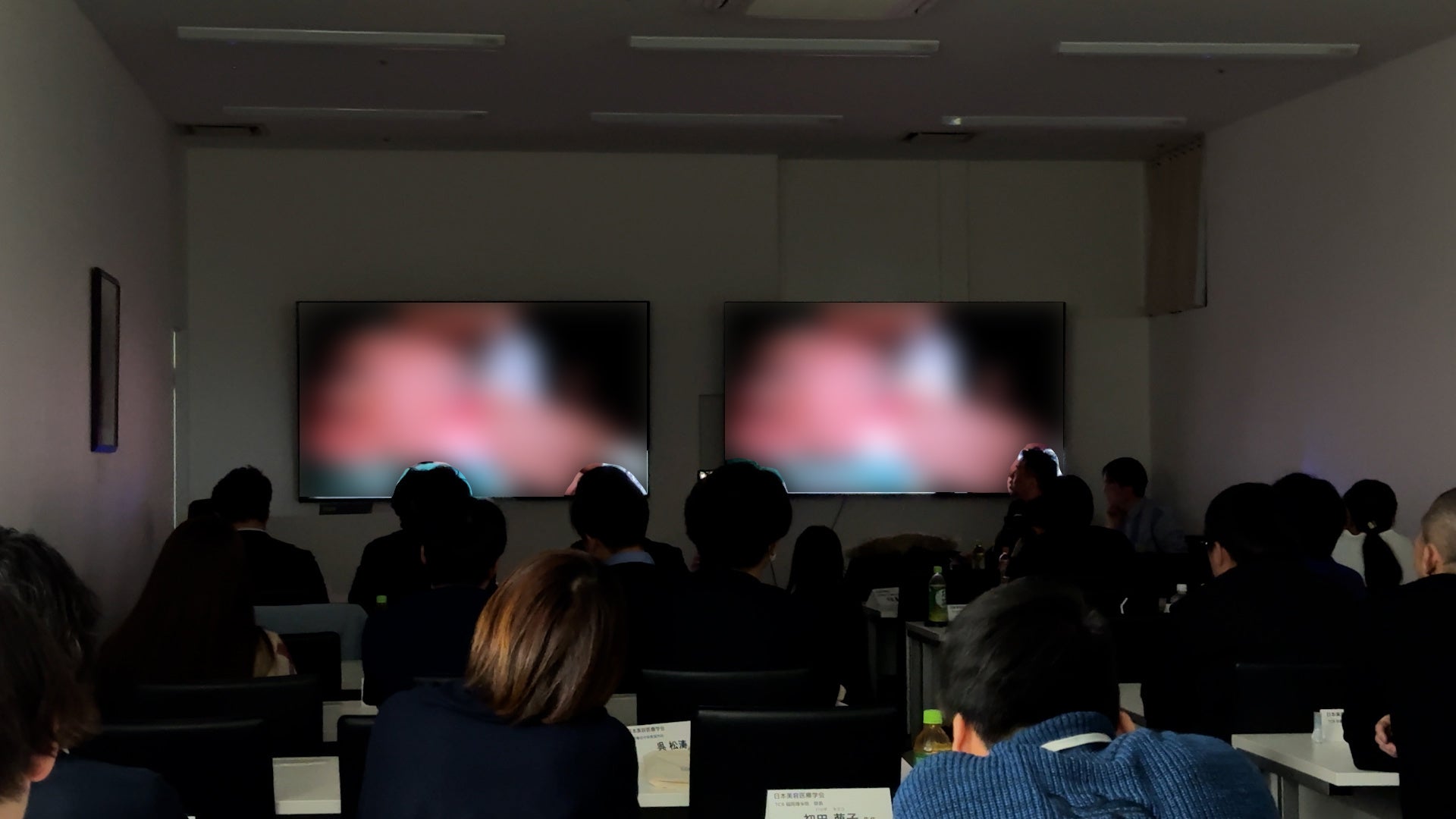 ライブ手術を見ながら、参加者たちが細部の手技まで確認し疑問点を質問できるように、⼿術室と本学会会場のモニター・⾳声をつなげて実施しました。乳頭再建術や鼻先延長術、ヒアルロン酸注入の手術をリアルタイムで供覧しながら、寺西代表理事らが手術のポイントと注意すべき点を詳しく説明しました。