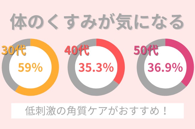 調査の結果、30代〜50代の女性のうち、特に30代女性に体のくすみが気になっている方が多いとわかりました。