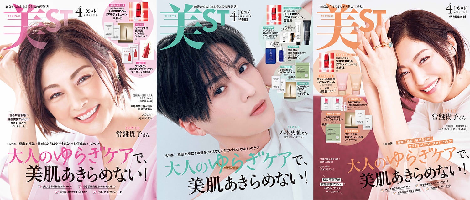株式会社光文社(本社:東京都文京区、代表取締役社長・巴一寿)発行の女性月刊誌『美ST』2025年4月号では、本誌・特別版増刊は常盤貴子さん、特別版はFANTASTICSの八木勇征さんが美ST初表紙を飾ります。