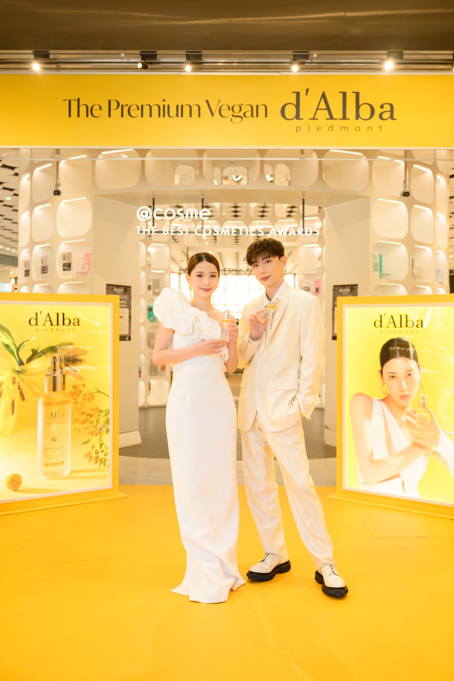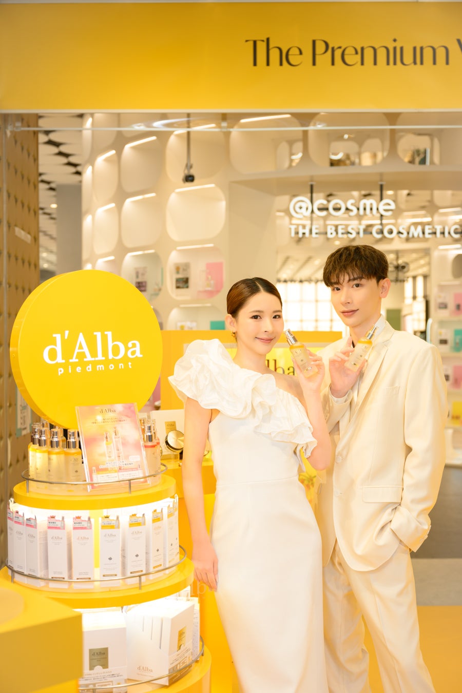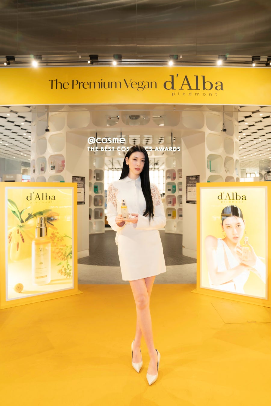 d’Alba Global Co., Ltd.が展開するプレミアム・ヴィーガン・ビューティーブランド、ダルバ(d’Alba)は、2月5日~2月11日まで@cosme TOKYOにて都内で初となる単独ポップアップを開催いたしました。ポップアップではダルバのベストセラーである「ホワイトトリュフファーストスプレーセラム」とブランドカラーのイエローを基調として華やかに飾られた会場が演出されました。ブランドの世界観が伝わる空間で、商品を実際に体験しながらブランドや商品について理解を深め、楽しんでいただきました。