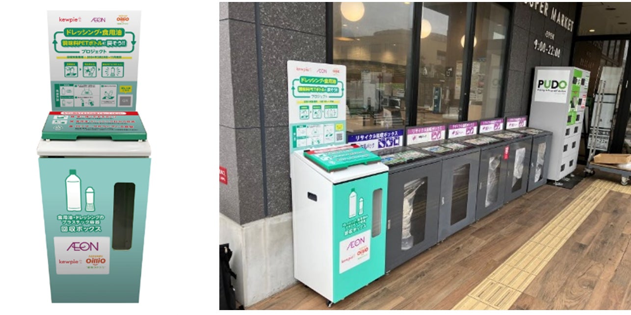 日清オイリオグループ株式会社(本社:東京都中央区、代表取締役社長:久野 貴久、以下日清オイリオグループ)と、キユーピー株式会社(本社:東京都渋谷区、代表取締役 社長執行役員:髙宮 満、以下キユーピー)は、ドレッシングや食用油の油が付着したPETボトルの資源循環に向けて、イオン株式会社(本社:千葉県千葉市、取締役 代表執行役社長:吉田 昭夫)に協力いただき、千葉市内のイオン・イオンスタイル8店舗にて、2024年5月29日(水)から11月30日(土)まで使用済み油付きPETボトルの回収実証実験※1を実施しました。目標を超える約175kgの回収量が得られましたので、概要を報告します。