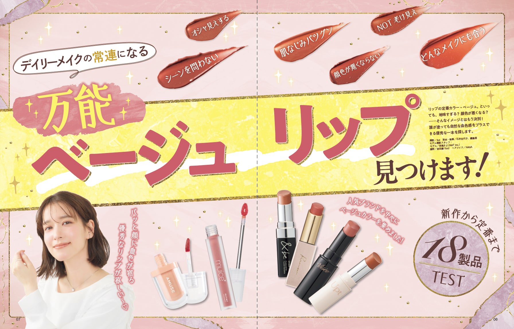 リップの定番カラー・ベージュ。といっても、地味すぎる? 顔色が悪くなる? ……そんなイメージとはもう決別! 誰が塗っても自然な血色感をプラスできる優秀な一本を探します。