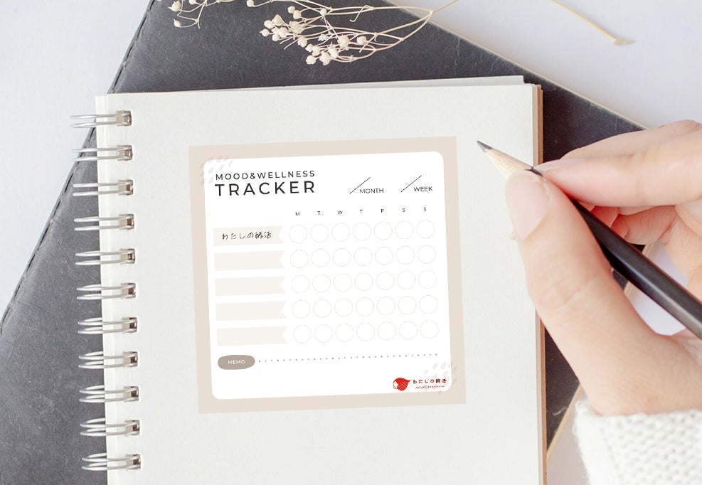 定期便会員さま限定で、毎日の体調や気分を簡単に記録できるアイテム「MOOD & WELLNESS TRACKER」をお届けします。どこでもすぐに使えるステッカータイプで、毎月記録した内容をLINEで送信すると、体調や気分の変化が見える化される「ゆらぎチェックサービス」をご利用いただけます。