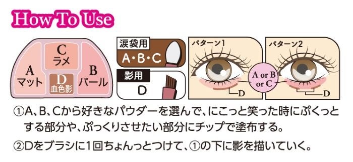 ・涙袋用に同系色のマット・パール・ラメの3種類+影用に1色のパウダーをセット