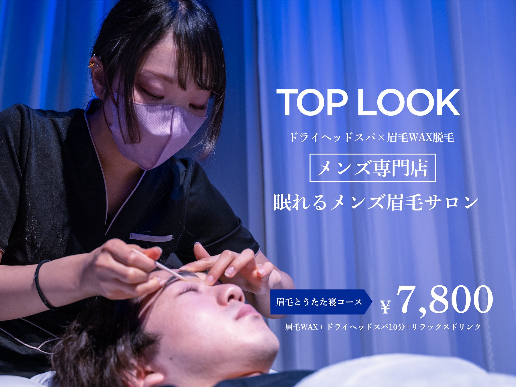 TOP LOOKは、メンズ専門の美容サロンで、眉毛ワックスとドライヘッドスパのメニューを提供しています。