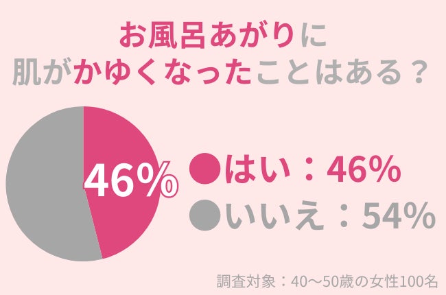 調査の結果、約半分の40代女性がお風呂上がりに肌のかゆみを感じたことがあるとわかりました。