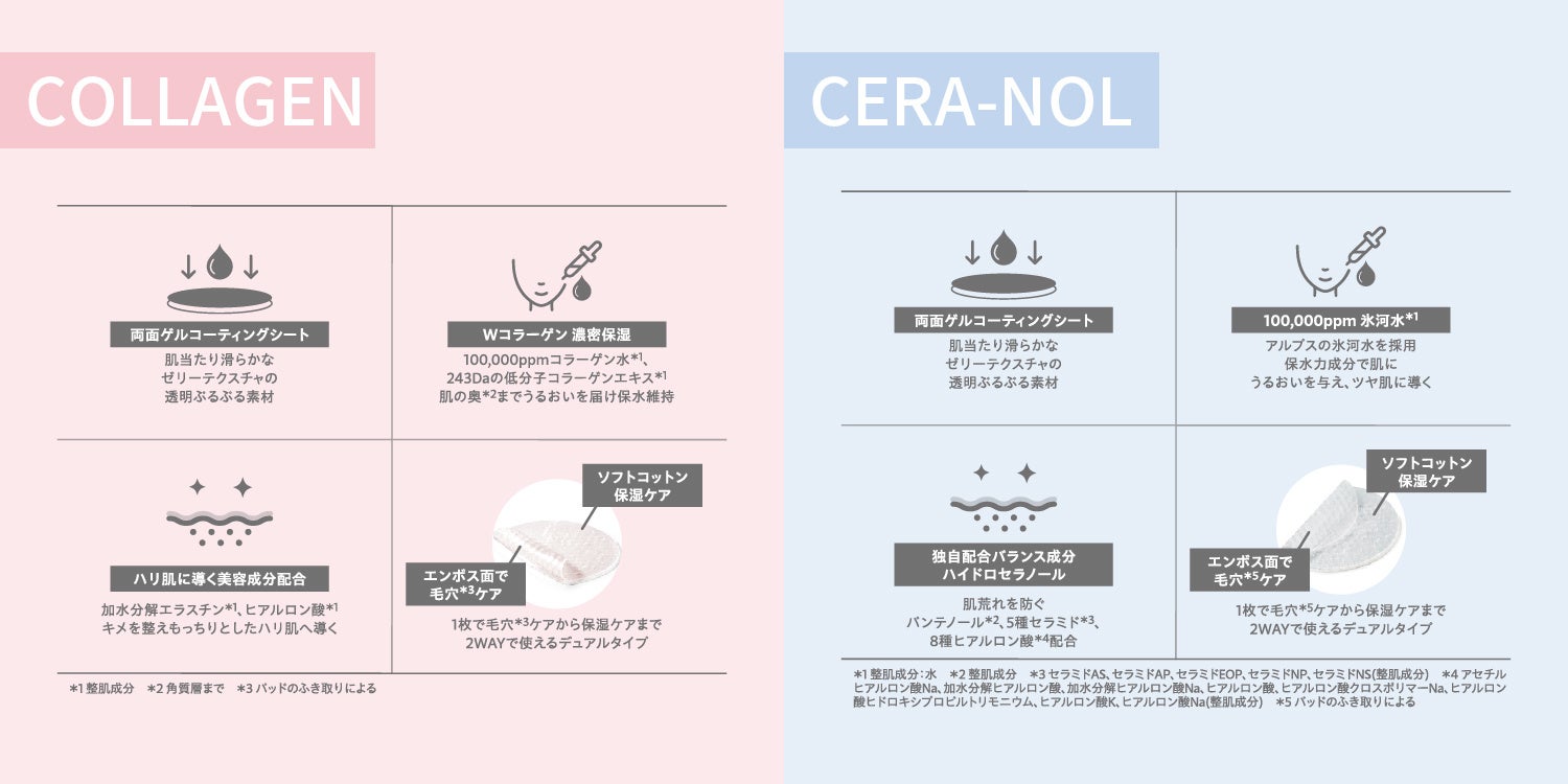 夜はふき取ってスッキリ滑らかな肌に。パックで気になる箇所を集中保湿。