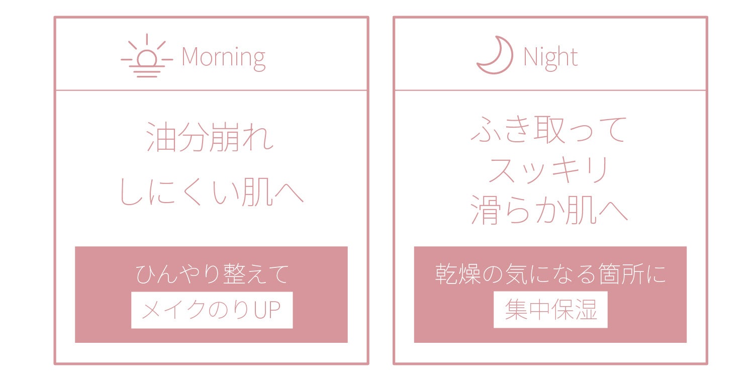 朝は肌をひんやり整えてメイクのりUP、油分崩れしにくい肌に。