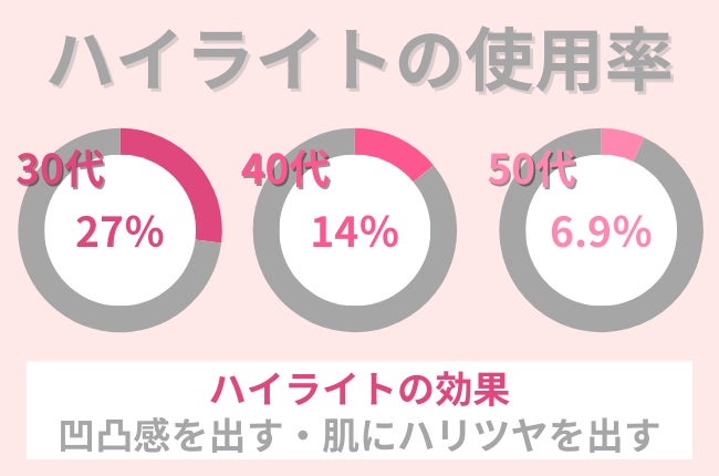 調査の結果、年齢を重ねるにつれてハイライトの使用率が低くなっていることがわかりました。
