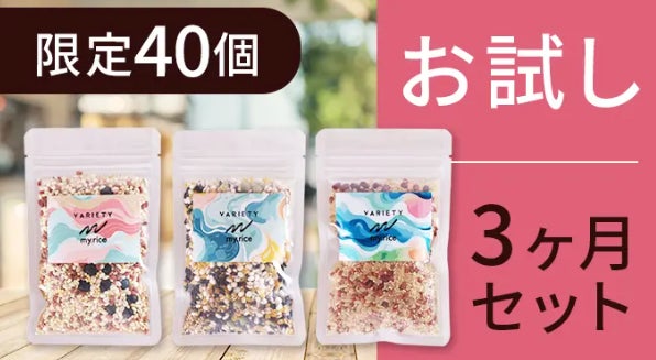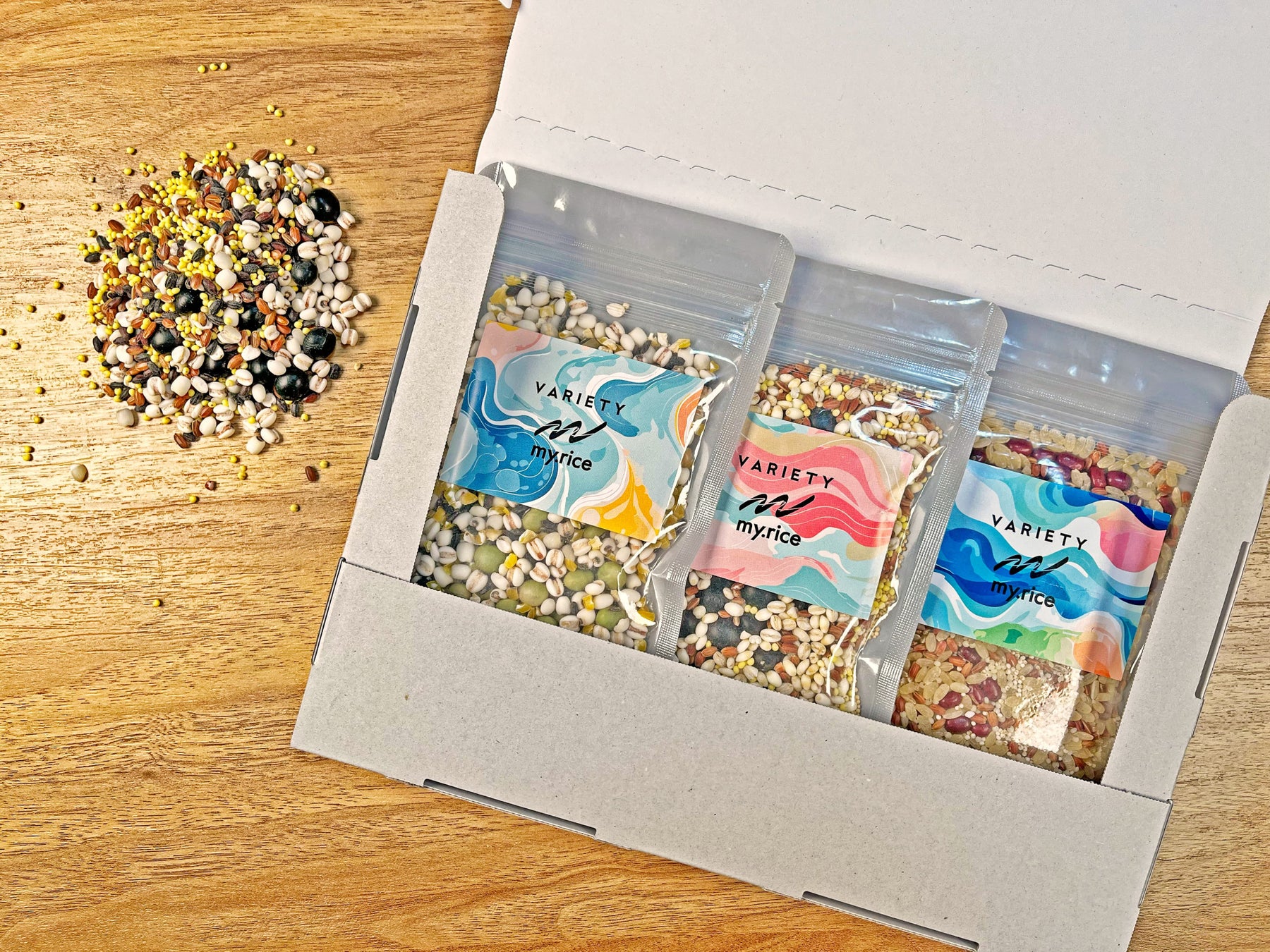 毎月3タイプの五穀米が届くので、いろいろな種類の雑穀米を楽しめること「my.rice VARIETY」の大きな特徴です。