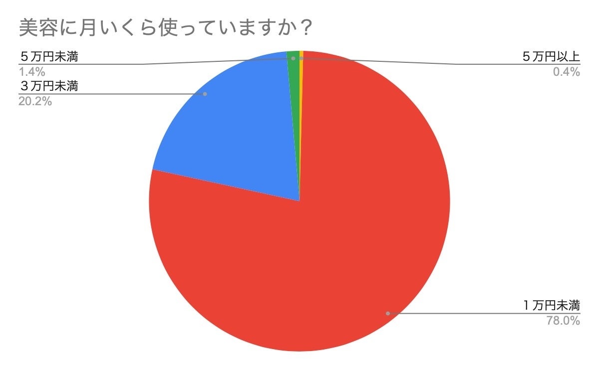 ·月にかける美容代が1万円未満:78.0%(女性73.0%)