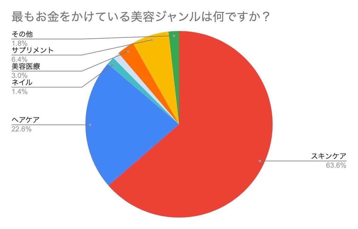 ·最もお金をかけている美容ジャンル:スキンケア 63.6%(女性67.4%)