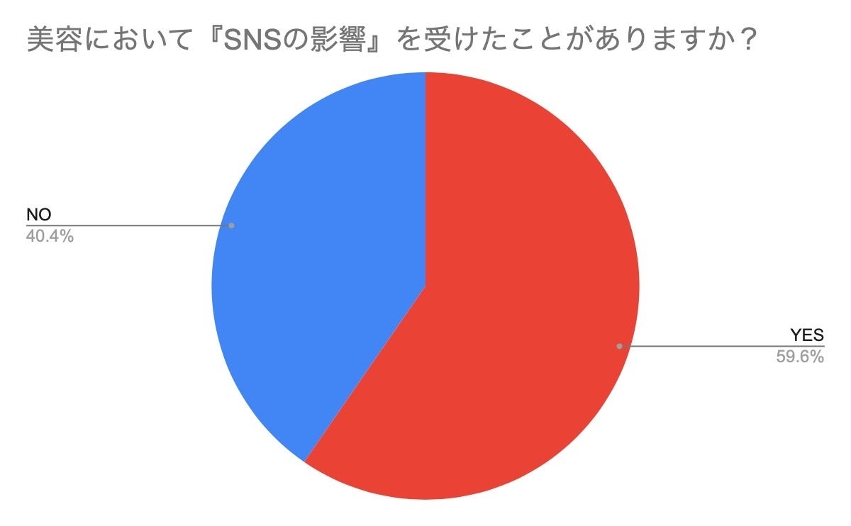 ·美容においてSNSの影響を受ける:59.6%(女性68.6%)