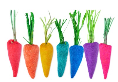 イースターバニーの大好物であるニンジンが虹色のバブルバーになりました。7色揃っているので、レインボウカラーで毎日違う色の泡風呂を楽しんだり、お気に入りの1色を選ぶのもおすすめです。ニンジン部分がなくなるまで繰り返し使えるリユーザブルタイプのバブルバーです。