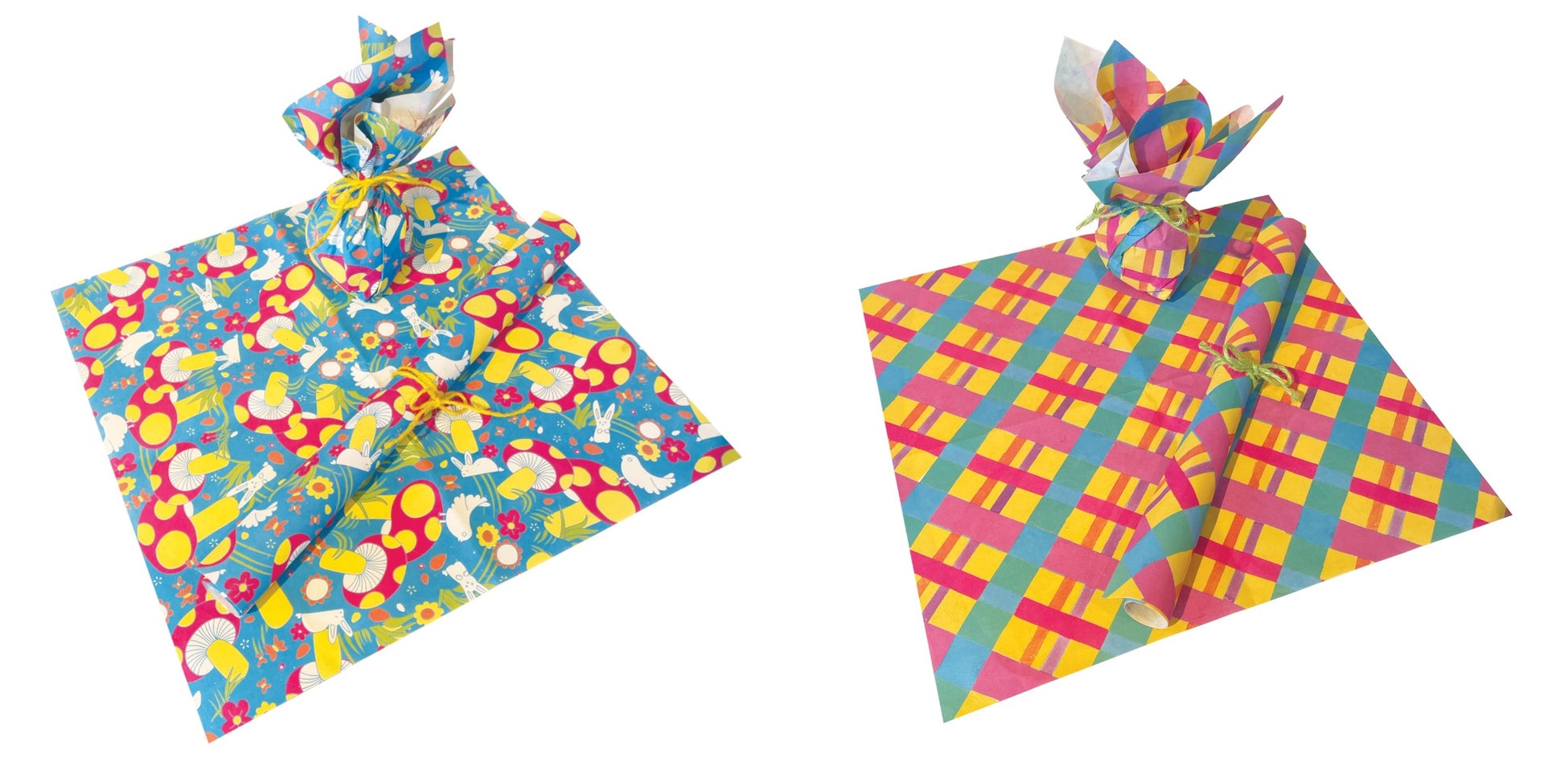 日本で古来から伝統的に使われている風呂敷にインスピレーションを受けて誕生しました。ギフトラッピングだけではなく、エコバッグやスカーフ、ヘアアクセサリーなどのファッションアイテムとしてリユースすることができます。ペットボトルからリサイクルされた再生ペット素材やインドの女性の就労を支援する団体re-wrapでつくられたオーガニックコットン100%素材など、エシカルな素材にもこだわりました。