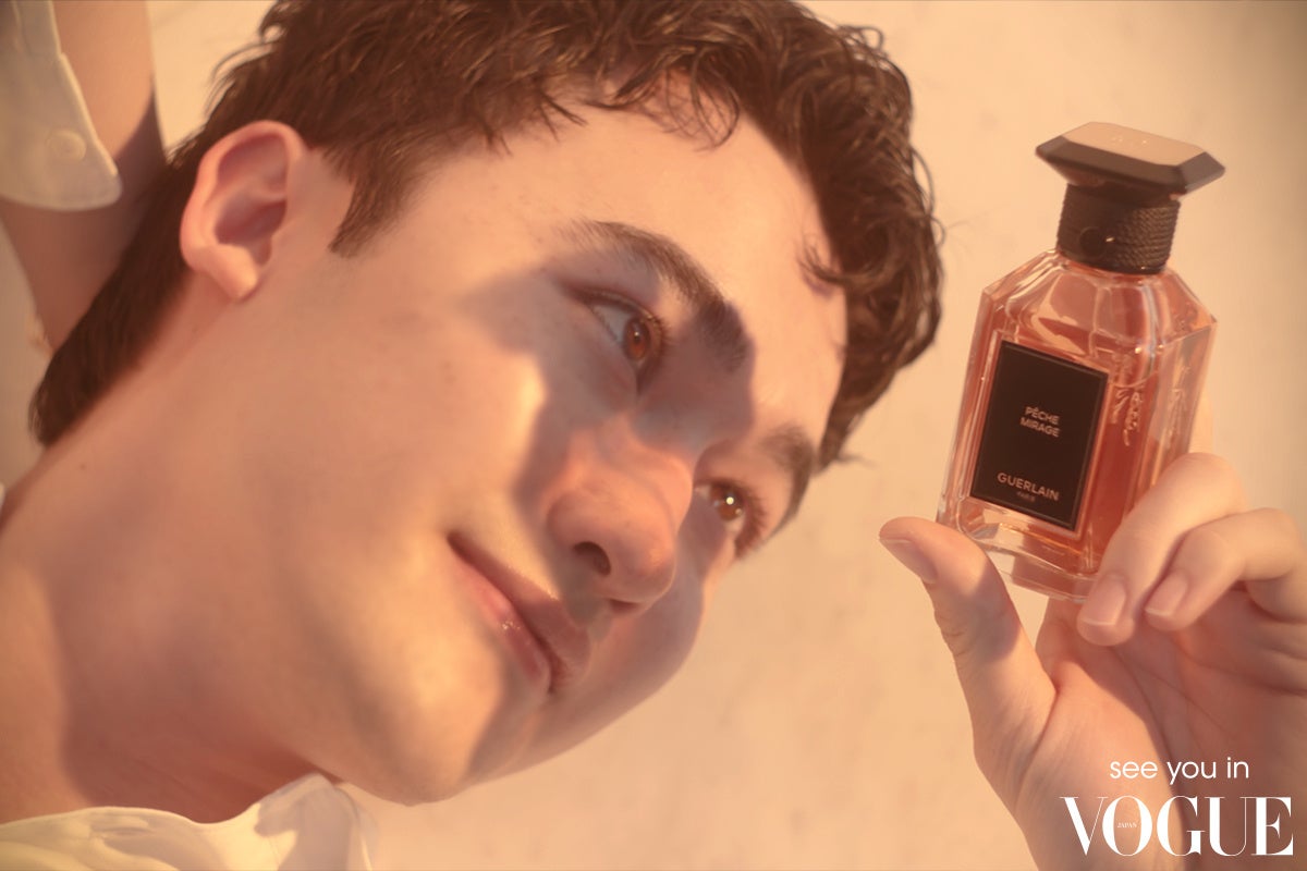 最後に、2025年1月に新発売となったジューシーなピーチとレザーがゆらめく香りの蜃気楼〈ペッシュ ミラージュ〉は、天然香料として存在しないピーチの香りを名香〈ミツコ〉によって生み出したゲランの革命をより現代的なアプローチで表現しました。みずみずしいピーチ、そしてサフランとブラックカラントのデュオによるジューシーでスパイシーに弾けるオープニング。オスマンサス(キンモクセイ) のフルーティかつレザーのようなアクセントと共に、次第に穏やかな丸みを帯びていき、柔らかなピーチとレザーのコントラストが肌の上でセンシュアルにゆらめきます。サンダルウッドとアンバーチンキと触れ、温かみを帯びたレザーと相まって、フルーティなアコードがアンバーの深みへととろけていきます。