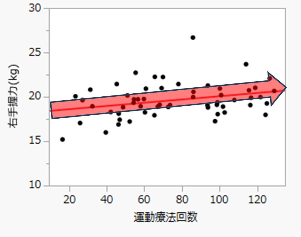 年間の運動療法回数が多い方ほど、脚の筋肉量が多く(左図)、握力が高い(右図)ことが分かりました。