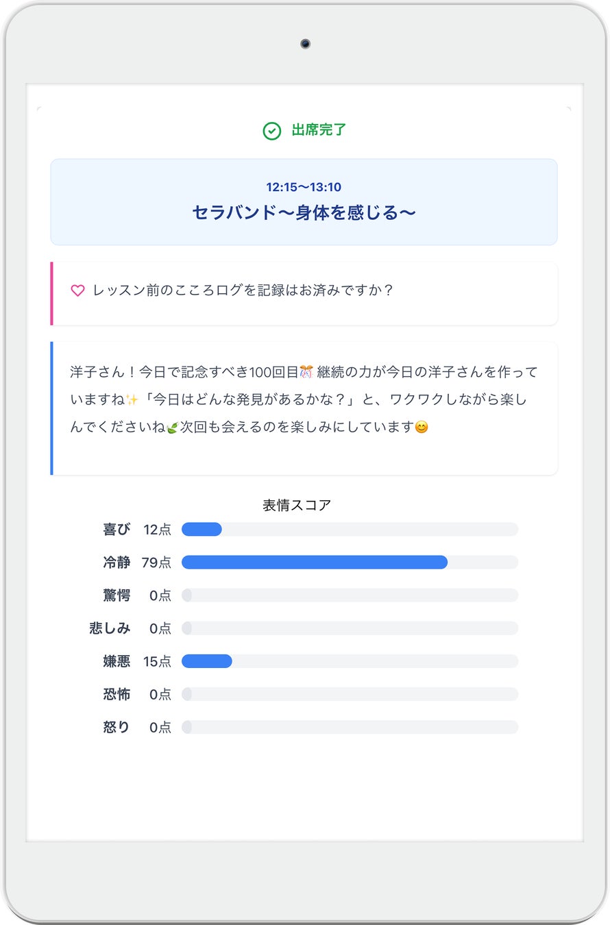 参加頻度やレッスン履歴をもとに、温かいメッセージを送信。