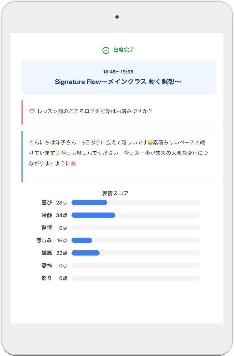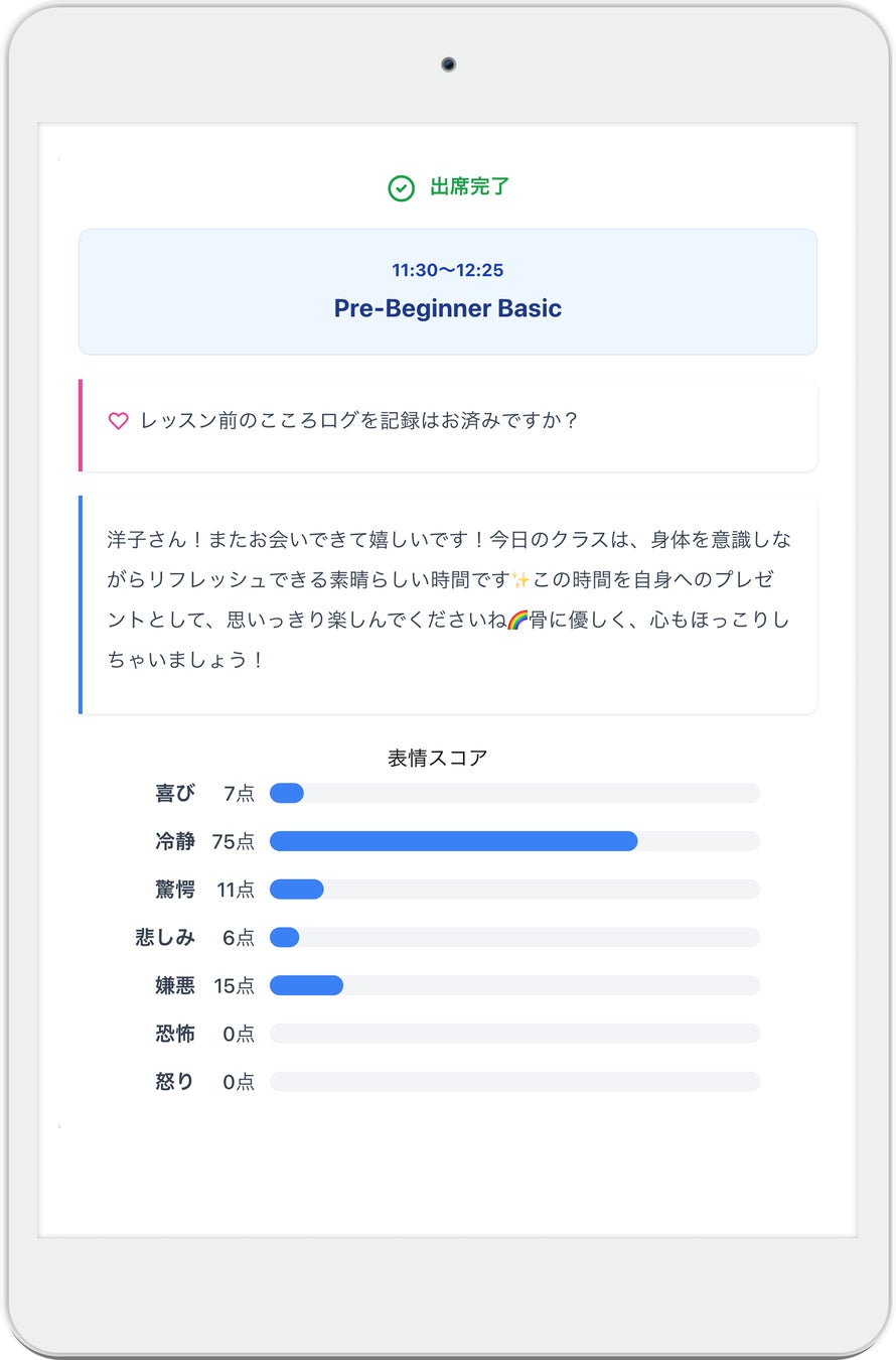 単なる出席システムを超え、会員様がレッスンに訪れたその瞬間から楽しさやワクワクを提供できるよう、一人ひとりに寄り添った体験を提供します。
