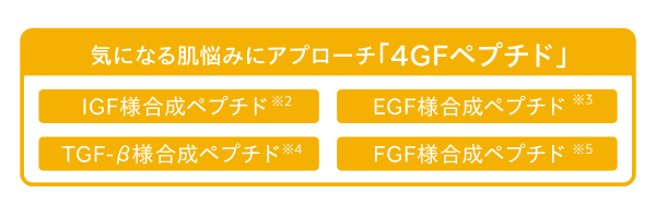 気になる肌悩みにアプローチする4種のペプチド成分を配合しました。