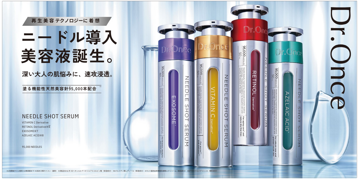 ドクターワンス株式会社(東京都港区、代表取締役:永井 博)より、再生美容テクノロジーに着想を得た「Dr.Once(ドクターワンス)」ニードル導入美容液が誕生しました。