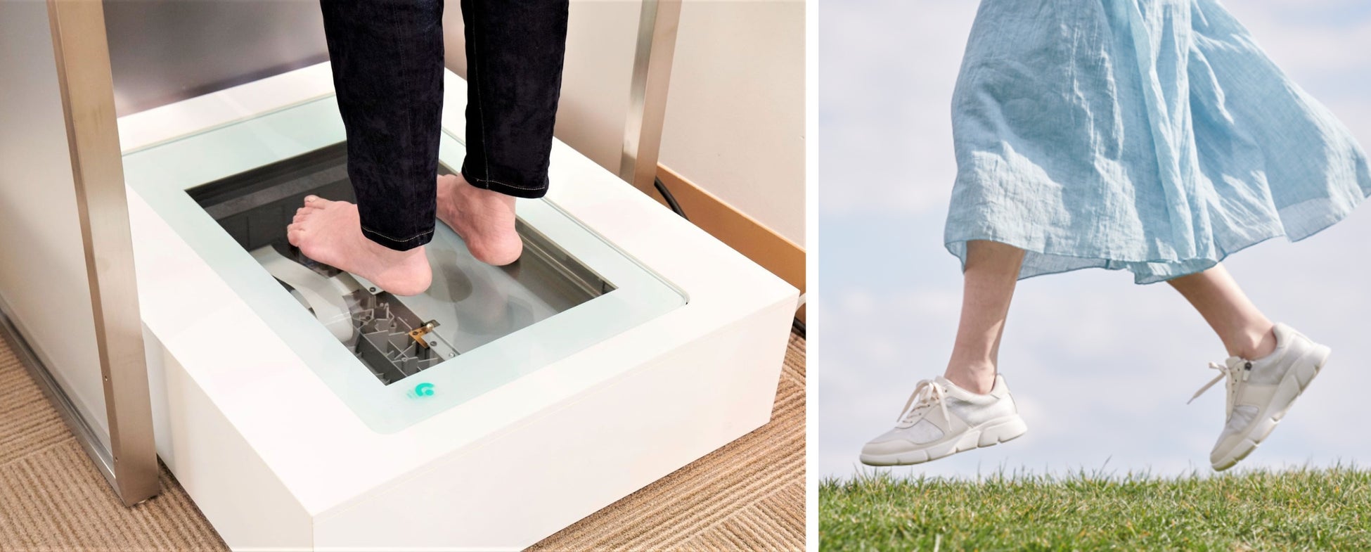 人生100年時代「一生自分の足で歩き続ける」ことを目指し、理学療法士と共同開発をしたハルメクオリジナルの靴。「痛くない」を目指し「正しく歩ける、ラクに歩ける」靴づくりをしています。靴の機能性と気持ちが上がるデザインで、お客様のずっと自分の足で歩く人生を応援していきます。また、足の測定コーナーで、足のバランスや形状などを測定し、お客様にぴったりの靴をご案内します。