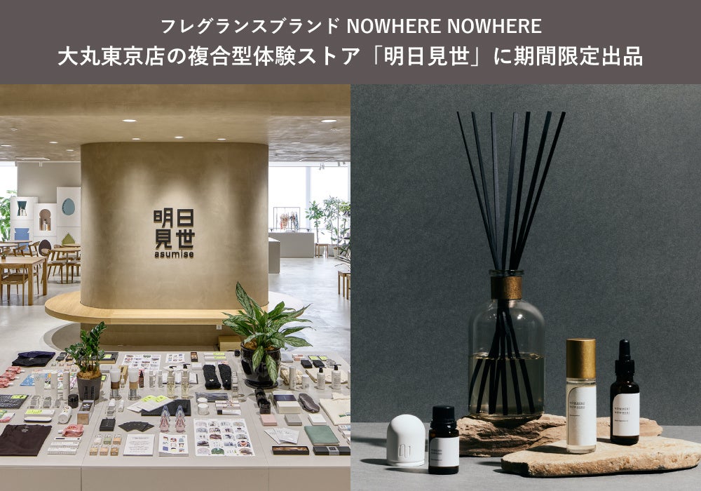 フレグランスブランド「NOWHERE NOWHERE(ノーウェア ナウヒア)」*は、2025年3月5日(水)から2025年5月27日(火)の期間、大丸東京店9階の体験型ストア【明日見世ーasumiseー】にオードパルファンをはじめとしたフレグランスアイテムを期間限定出品いたします。