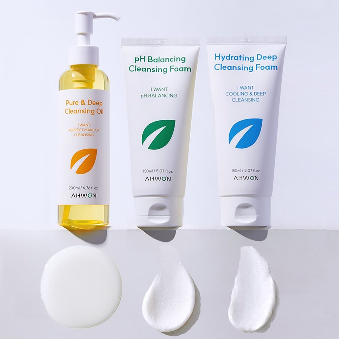 ・AHWON ピュア&ディープクレンジングオイル:毛穴の汚れや皮脂をすっきり洗い流し、肌をなめらかに整えます。