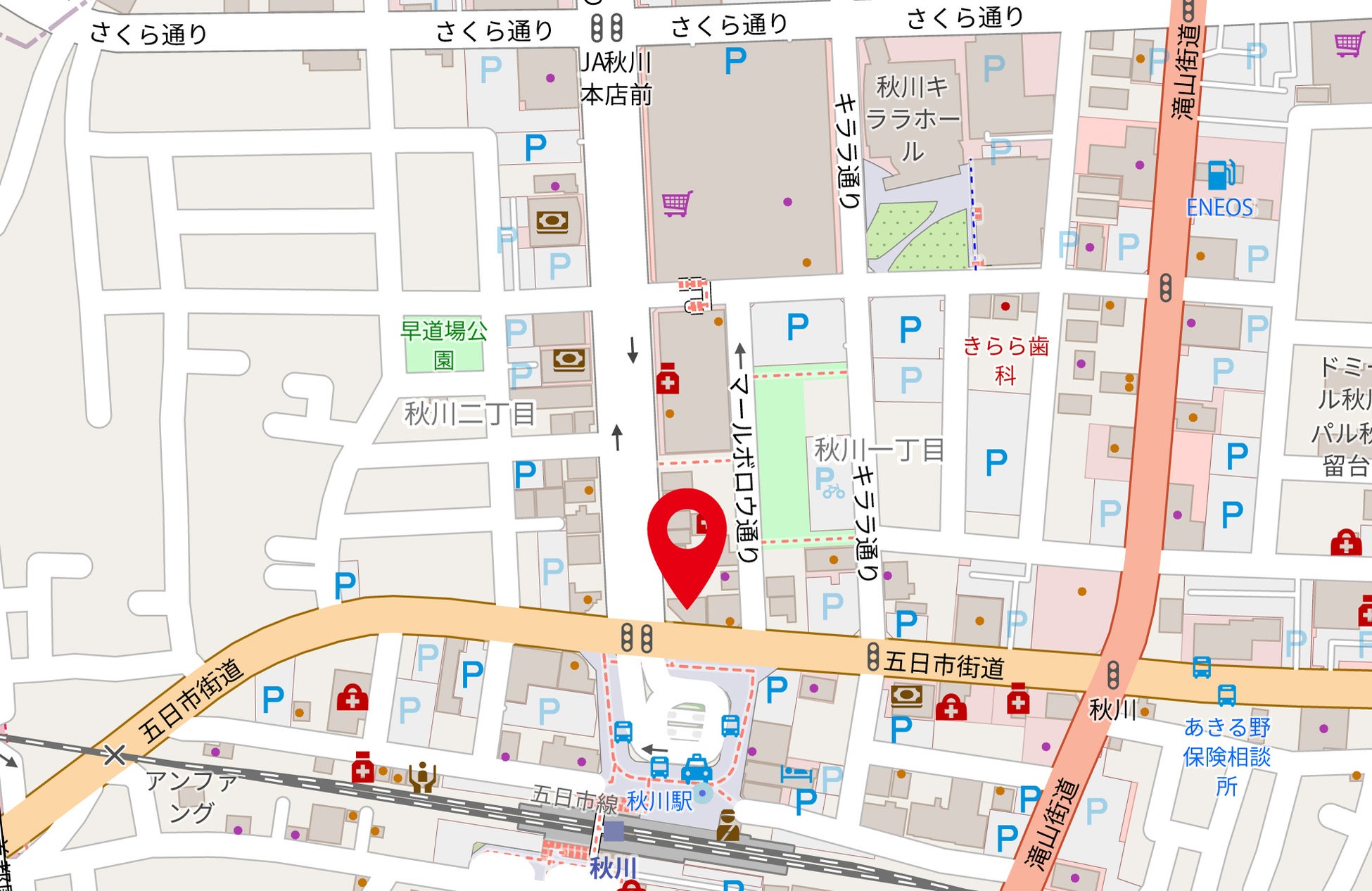 東京サマーランドのあるあきる野市、JR五日市線の秋川駅から徒歩1分の場所にあり、通勤通学の際にもご利用いただきやすい場所にあります。