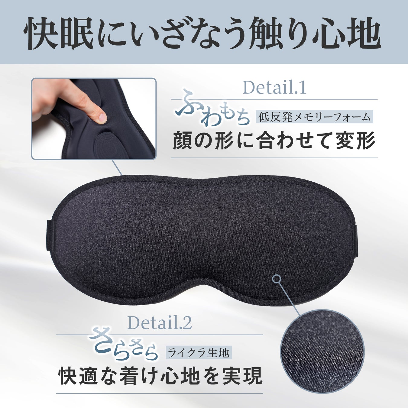 本製品は、ゲーマーをはじめとした多忙な方々の睡眠の質向上を目的に開発されました。独自の【ノーズフィット形状】により圧倒的な遮光率(99.9%)を実現し、待機電源のLEDライトやモニターのスタンバイランプなどの小さな光を遮断します。さらに、【低反発メモリーフォーム】を採用し、寝返りを打っても快適なフィット感を維持。超軽量【33g】設計により、長時間の装着でも違和感を感じにくく、通気性に優れたライクラ生地がさらさらの着け心地を提供します。
