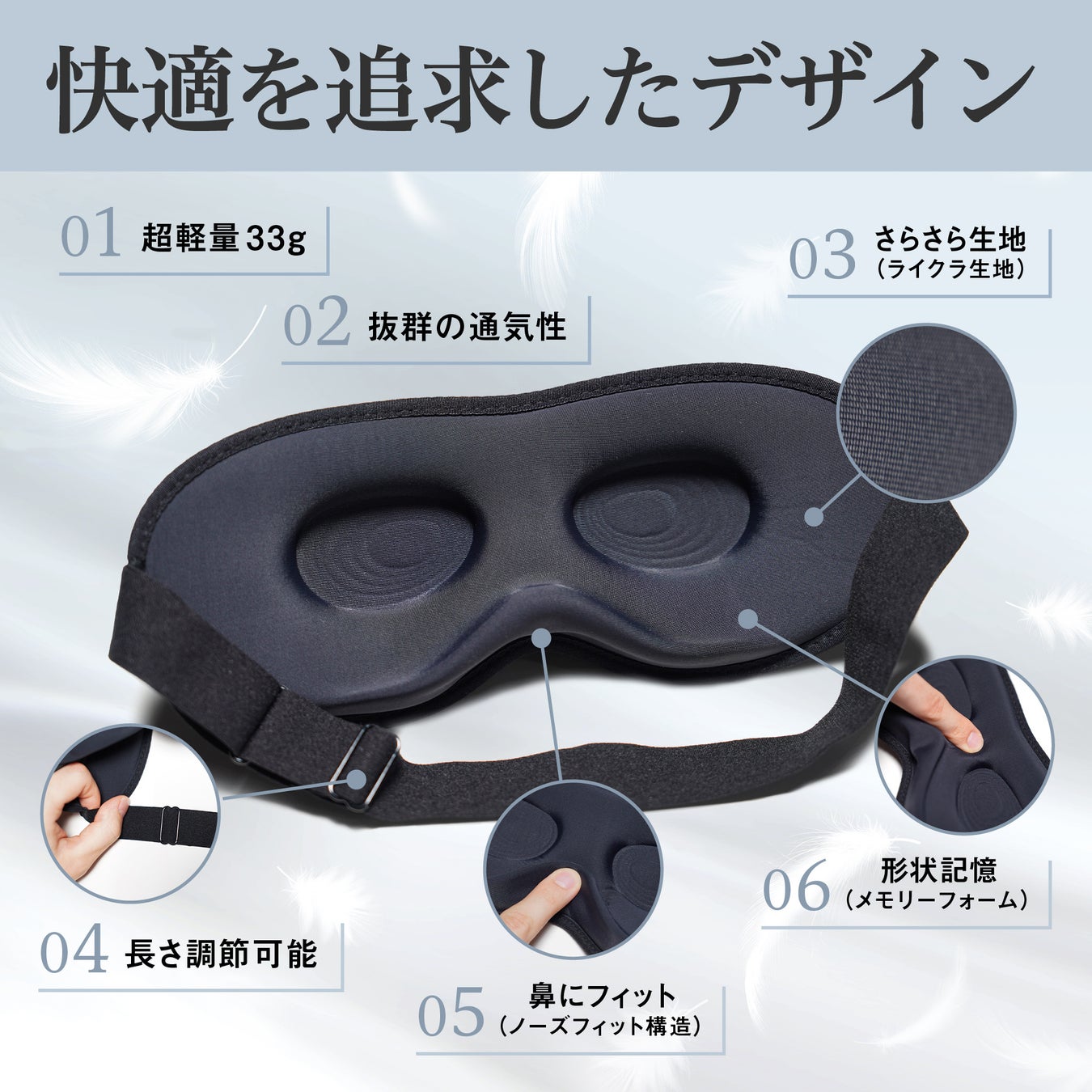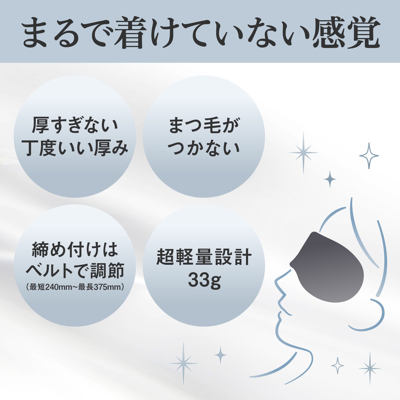 わずか【33g】の超軽量設計 で、睡眠時も重みが気にならない