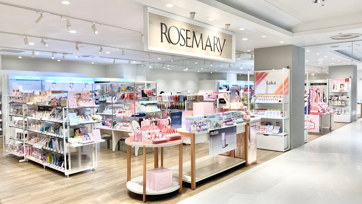 「ROSEMARY(ローズマリー)」は、 “for a lifetime of beauty” をコンセプトに、コスメ専門店として韓国、アジアンコスメから国内化粧品まで、幅広い商品を取り揃えております。『なりたい自分』のメイク提案や、お客様に最適なお肌のケアまで、多様化した美しさをサポートするコスメ専門店です。リニューアルオープンに伴い、これまで以上にお客様にキレイを提供できるお店を目指してまいります。