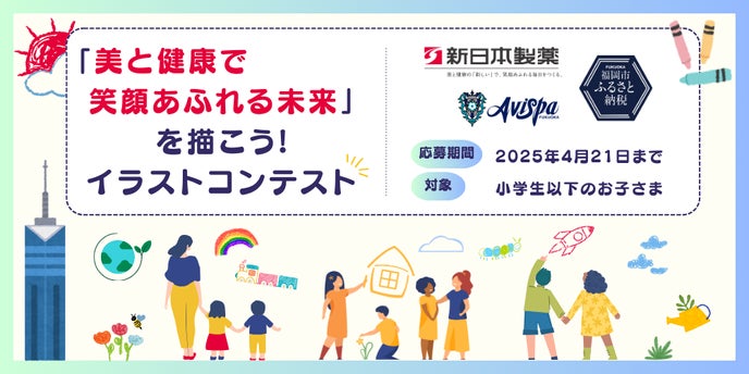 新日本製薬 株式会社(本社:福岡市、代表取締役社長CEO:後藤孝洋)は、アビスパ福岡株式会社、福岡市のご協力のもと、全国の小学生以下のお子さまを対象に、「美と健康で笑顔あふれる未来」の絵を募集するイラストコンテストを開催しております。