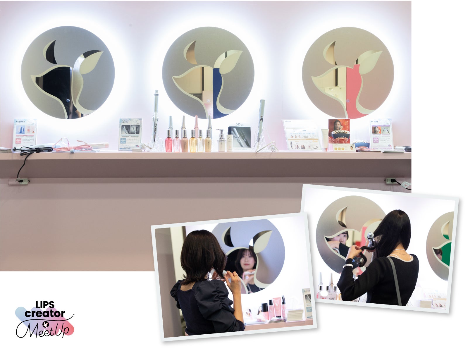 ガジェットをはじめとしたアイテムを試せるメイク直しブース「LIPSドレッサー」。ヘアアイロン・ヘアオイル・美顔器などを手に取るクリエイターからは、「前から気になっていたのでありがたい。」「プリクラを撮る前に身だしなみを整えたかった!」などの声が寄せられました。